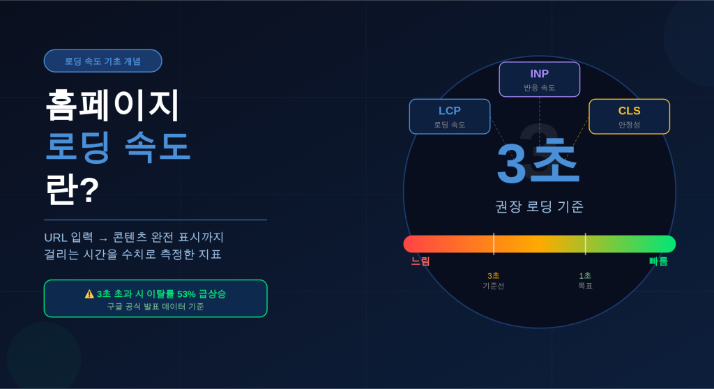 홈페이지 로딩 속도란 사용자가 주소창에 URL을 입력하고 엔터를 눌렀을 때부터, 화면에 콘텐츠가 완전히 나타날 때까지 걸리는 시간을 말합니다.