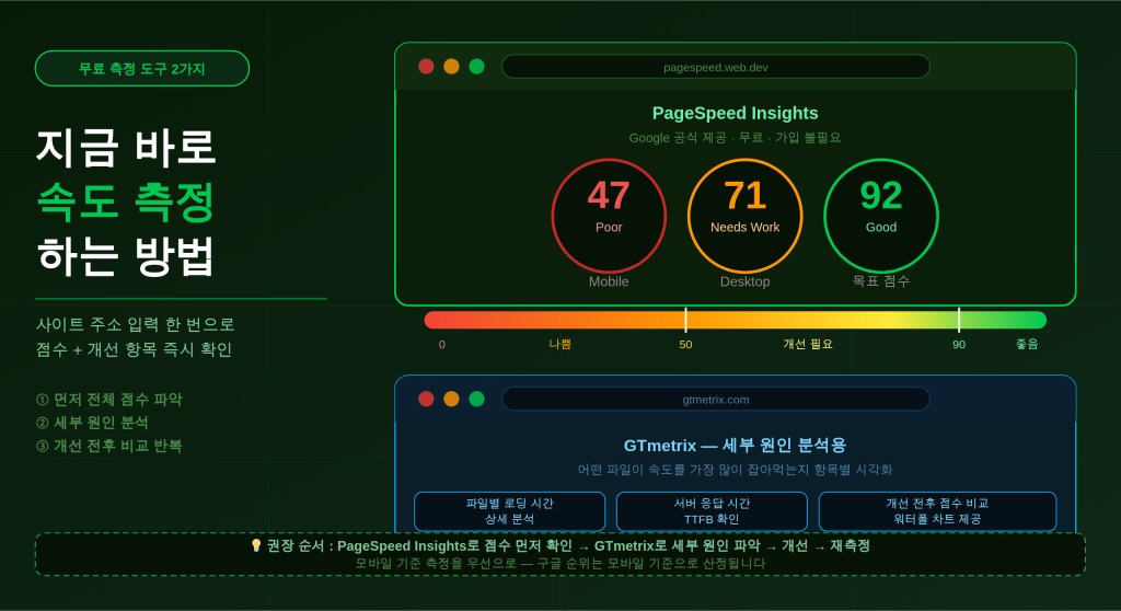 측정은 한 번으로 끝내지 말고, 개선 작업 전후로 비교하면서 진행하는 게 중요합니다. 어떤 작업이 실제로 점수에 영향을 미쳤는지 확인할 수 있기 때문입니다.